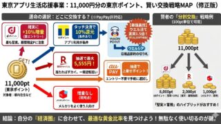 キャッシュレス PayPayは対象外!東京ポイント11,000円分の交換ルートを徹底比較。一番おトクな交換先はどこだ?