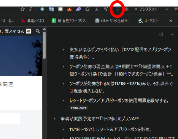例えば、新しいタブを開き、アシスタントで現在開いているページ「@Amazonの製品ページ と @競合サイトのレビュータブ の内容を比較して、価格差とユーザー評価の傾向をまとめて」 といった指示が出せる。これは、タブを切り替える手間を省き、AIに情報統合を依頼する時短テクニックだ。