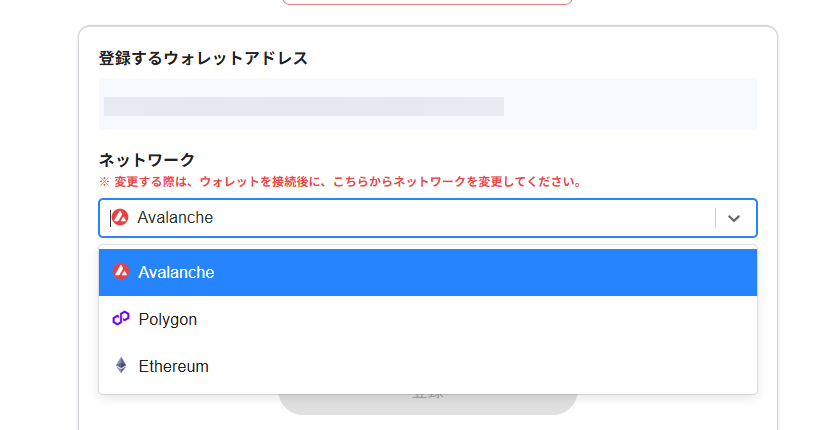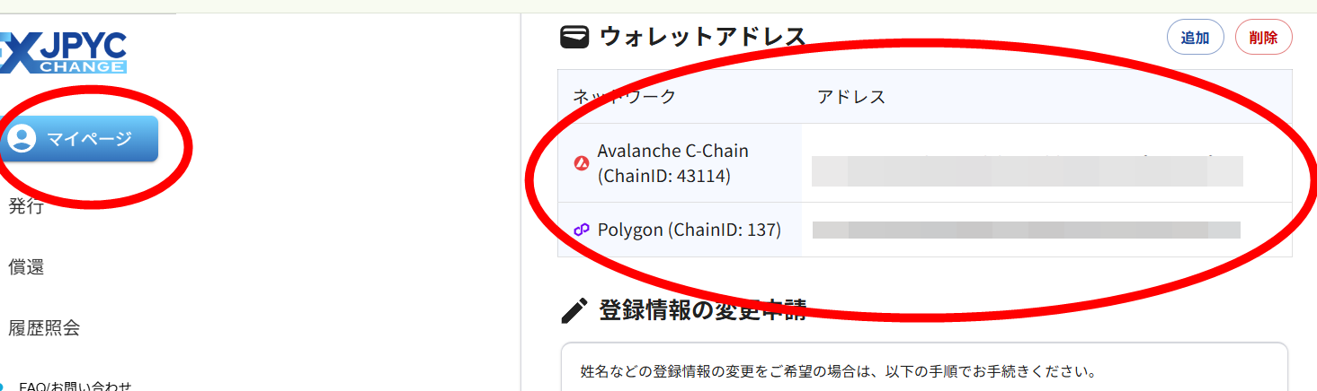 マイページにて、アバランチとポリゴンが正確に登録されていることを確認する。
