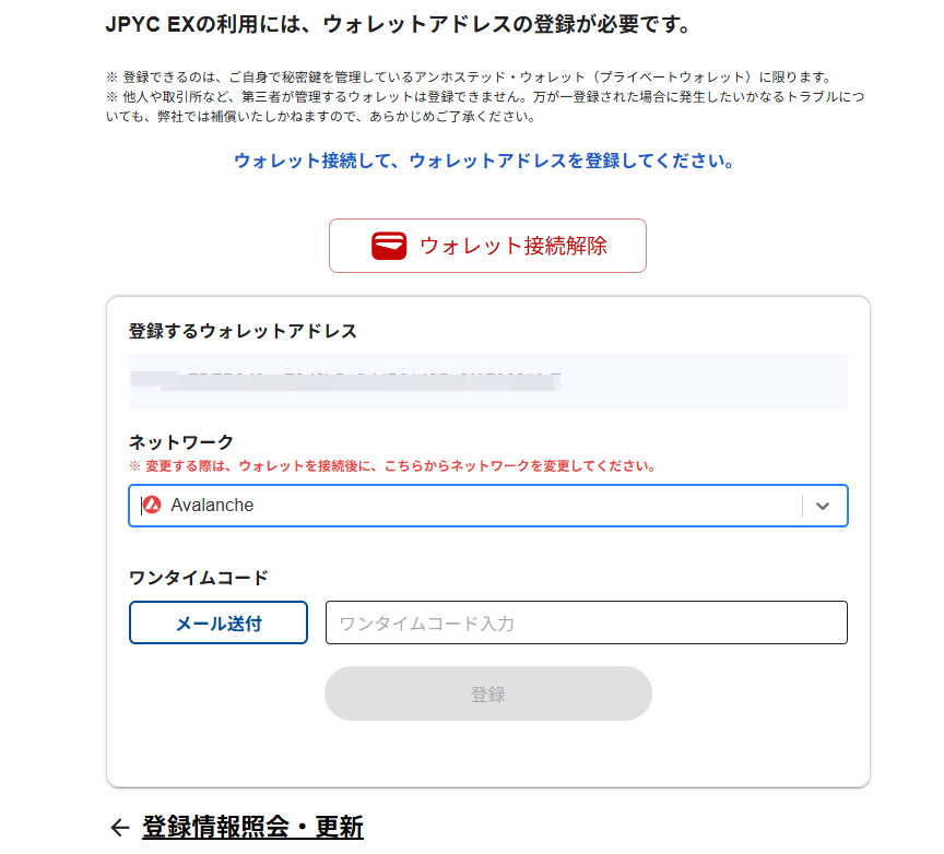 1. JPYC EXのトップページに戻り、再度「ウォレットアドレス登録」に進む。