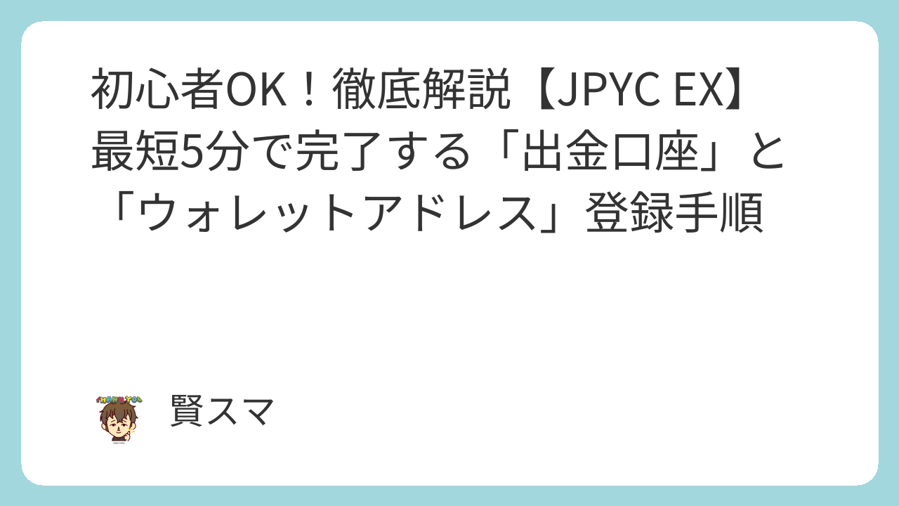 初心者OK!徹底解説【JPYC EX】最短5分で完了する「出金口座」と「ウォレットアドレス」登録手順
