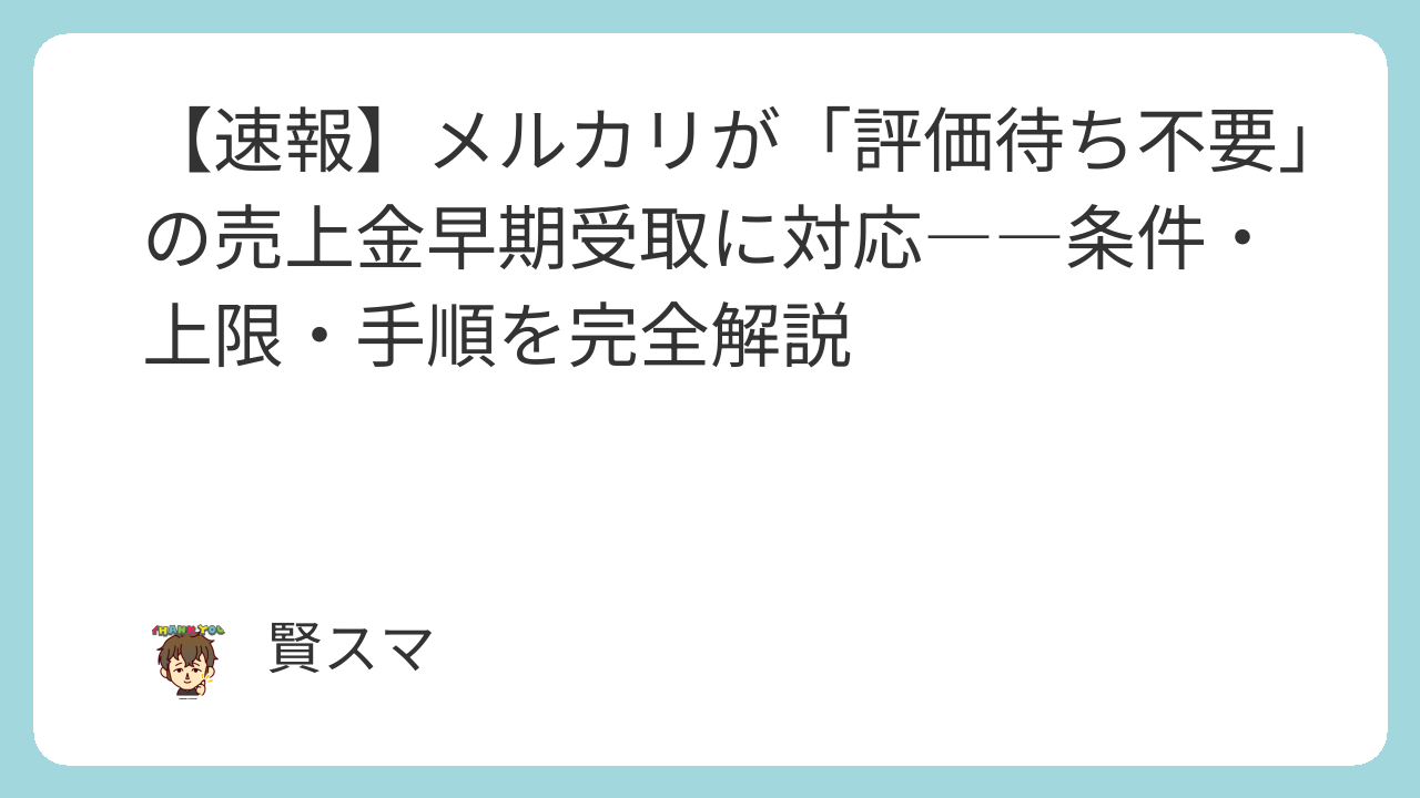 2026年4月8日、メルカリが出品者にとって実用性の高いアップデートを発表した。一定条件を満たした出品者であれば、購入者からの評価を待たずに売上金を受け取れるようになったのである。