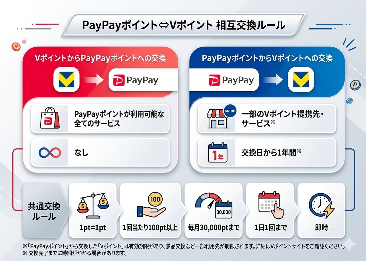 2026年3月16日、三井住友カード株式会社、CCCMKホールディングス株式会社、PayPay株式会社の3社が、「PayPayポイント」と「Vポイント」の相互交換を開始すると発表した。開始日は2026年3月24日(火)である。