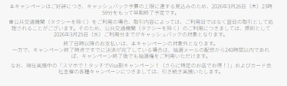 ※「本キャンペーンは、キャッシュバック予算上限到達見込みのため、前倒しで2026年3月26日(木)23:59をもって早期終了予定と発表された