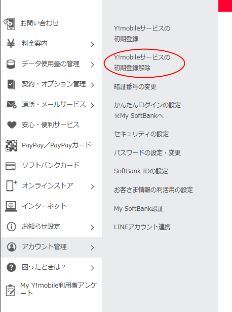 表示に注意!「Y!mobileサービスの初期登録」からでは確認できない